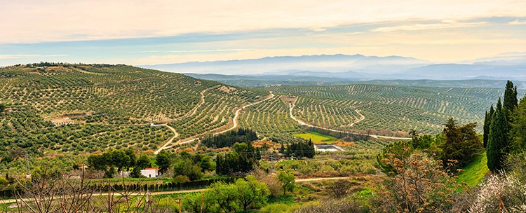 Olive groves stretch across the Spanish countryside, where olive oil has been produced for generations. Pictured here is Andalucia, Spain. Photo: Deposit Photos